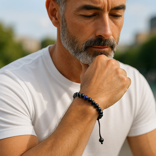Black Onyx Wrist mala/Bracelet with Lapis spacer