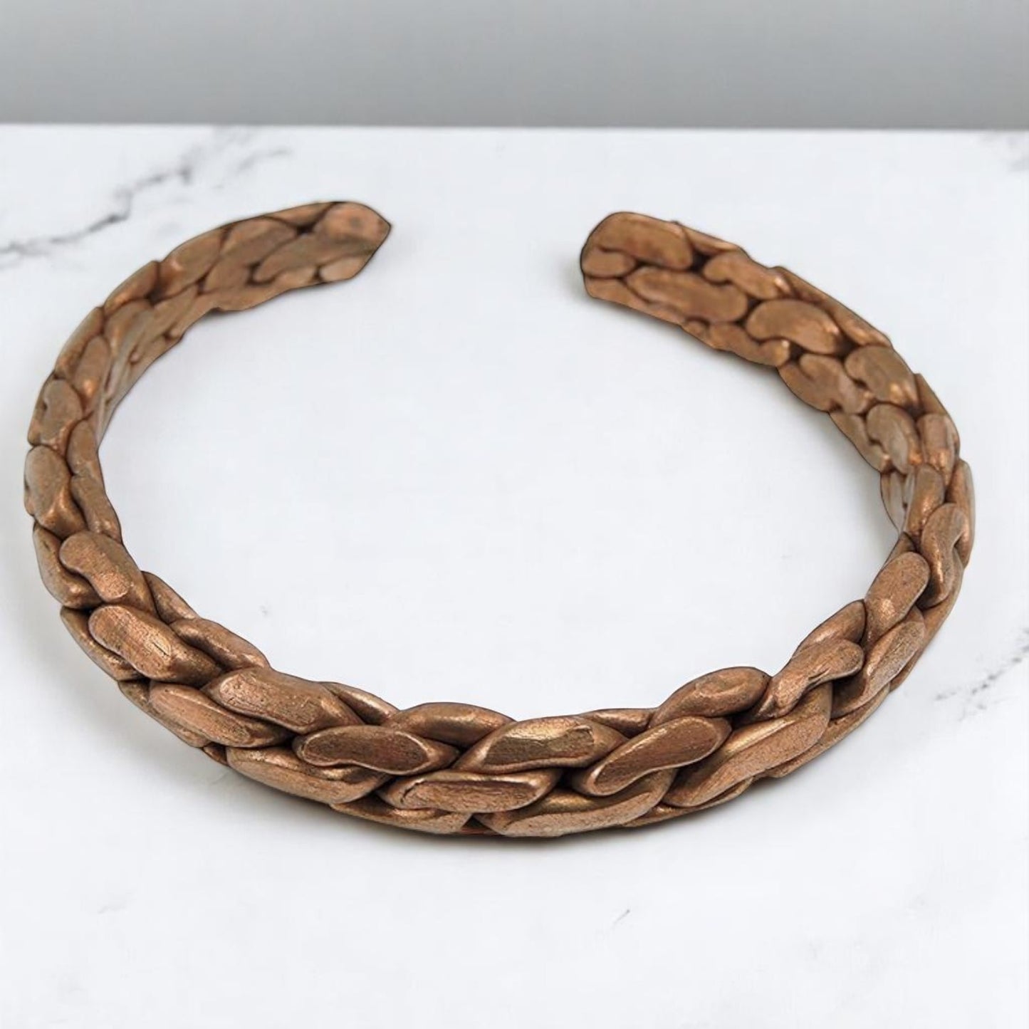 This listing is for a copper bracelet from Nepal. It measure 0.4 inch wide and handmade in Kathmandu Nepal and it is adjustable so that it would fit on most wrists. These kind of bracelets are worn to help relieve tendonitis and sore wrists. Please email me with any questions.