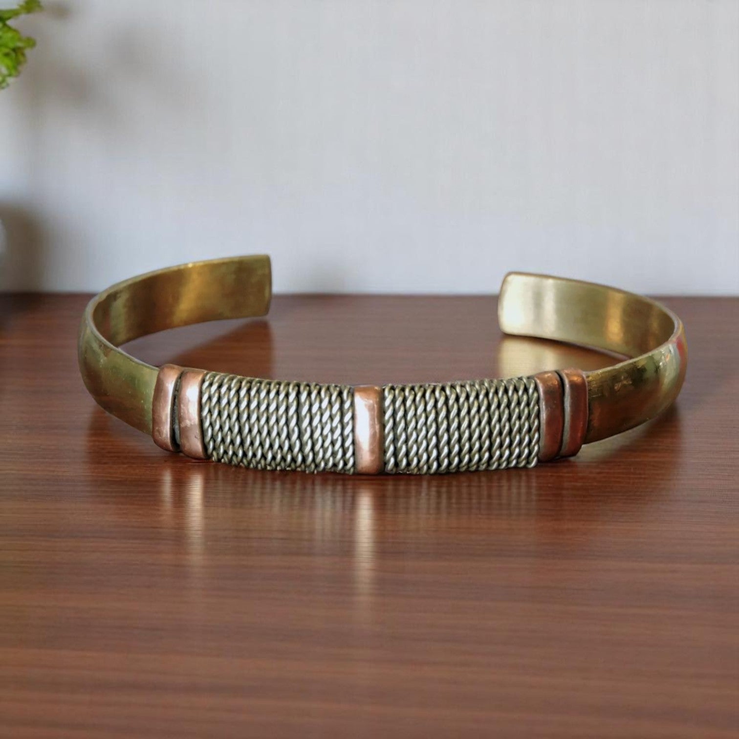 Tibetan Three Metal Medicine Healing Bracelet – Adjustable Himalayan Cuff – Handmade in Nepal