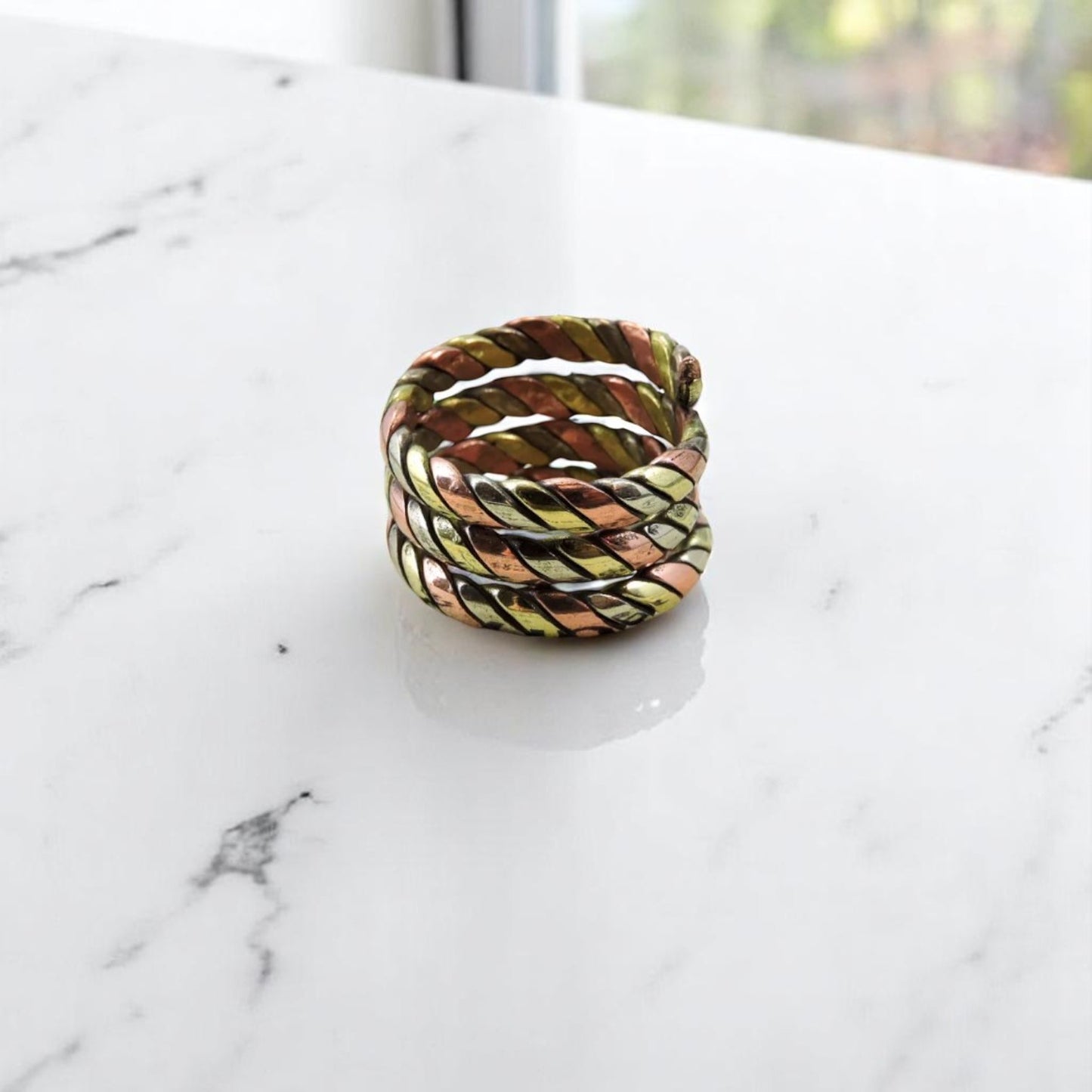 Handmade Twisted Three metal medicine/ healing spiral ring