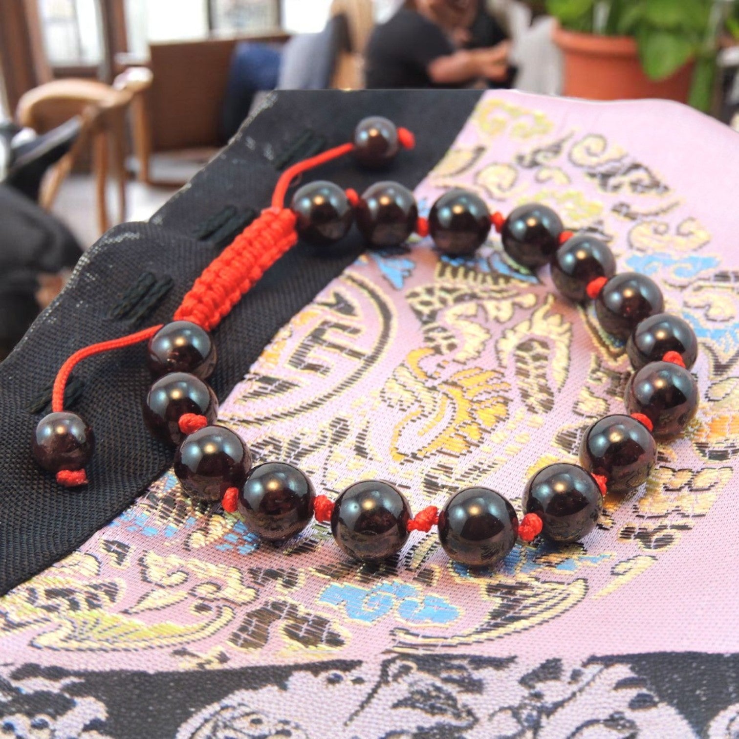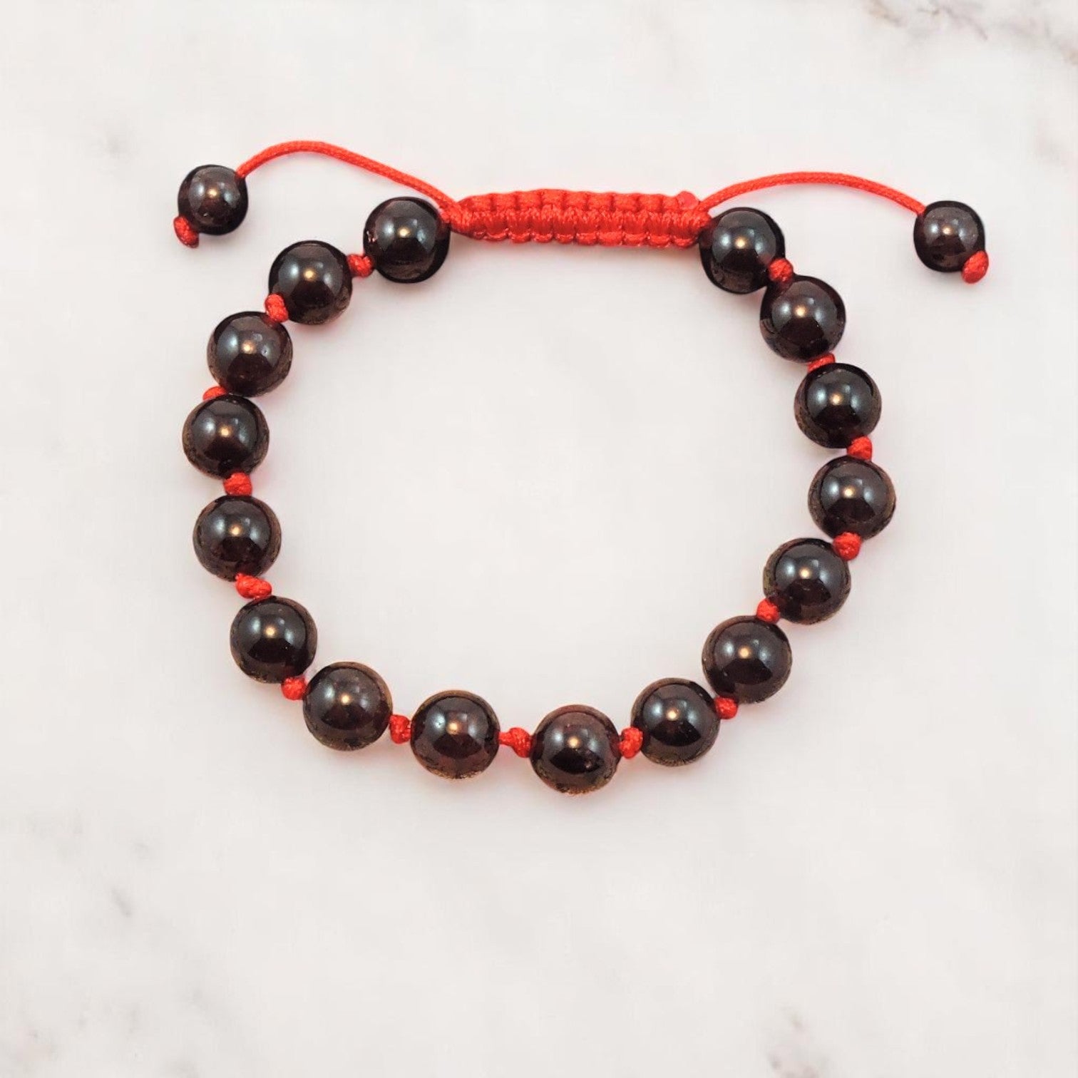This listing is for an individually knotted garnet wrist mala bracelet. Garnet is a protective energy stone. It inspires love, passion and is excellent for use in business endeavors.