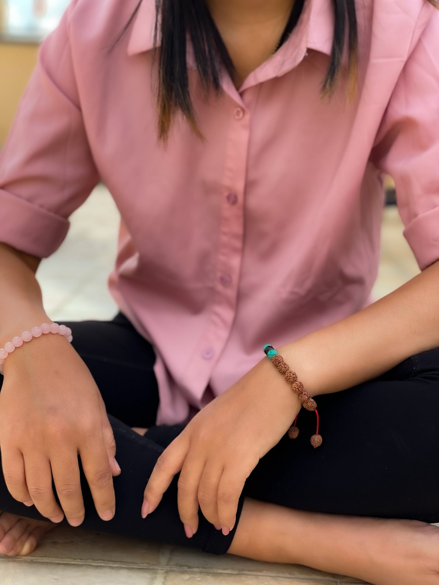 This listing is for a rudraksha wrist mala with turquoise and tiger's eye. Rudraksha is known for its ability to aid in controlling stress, meditation, and promoting positive changes. Turquoise is known for its ability to protect from outside influences and its ability to dissipate negative energy. Turquoise resonates with the throat chakra. Tiger's eye is useful for releasing fear and anxiety, finding harmony, mental clarity, courage, and self-confidence. It resonates with the solar plexus chakra. The rudraksha beads measure approximately 7mm and the turquoise and tiger's eye beads measure approximately 8mm. Each mala is strung by Hands of Tibet with love.