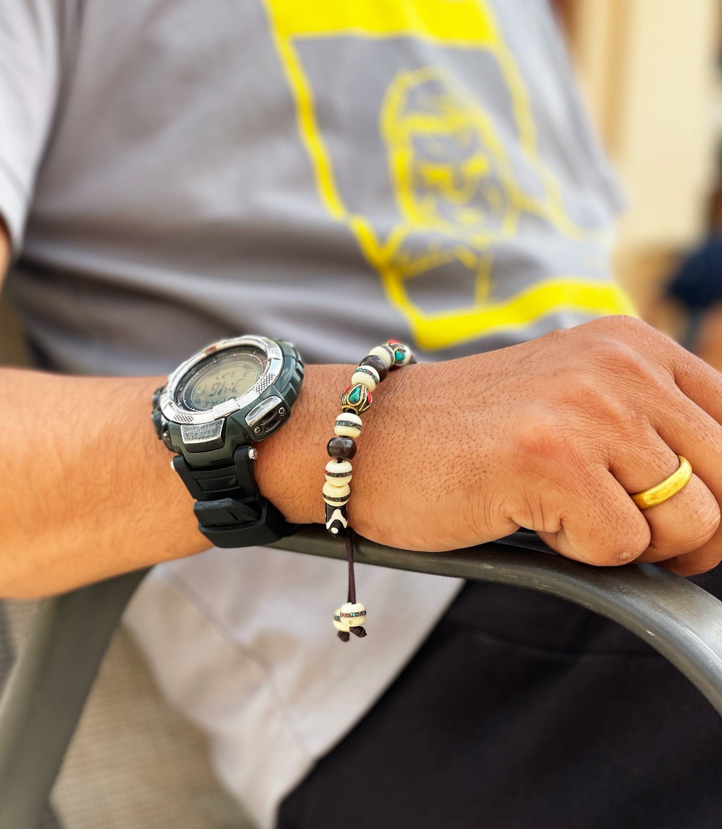 This listing is for a healing wrist mala with a stunning combination of embedded yak bone medicine beads, dyed yak bone beads, and coral/turquoise beads. The yak bone beads are inlaid with copper, nickel, brass and turquoise and coral. Yaks have played a significant role in Tibetan culture and lifestyle for centuries by being used for transportation of goods, yak hair is used for fabrics and rope, and yak milk is used for cheese and butter. Yak bone represents impermanence and is said to maintain healthy blood circulation. Copper, nickel, and brass are believed to be healing metals in Tibetan culture. Turquoise is known for its ability to protect from outside influences and its ability to dissipate negative energy. Turquoise resonates with the throat chakra. Red coral quiets emotions and brings inner peace. Red coral resonates with the root chakra.